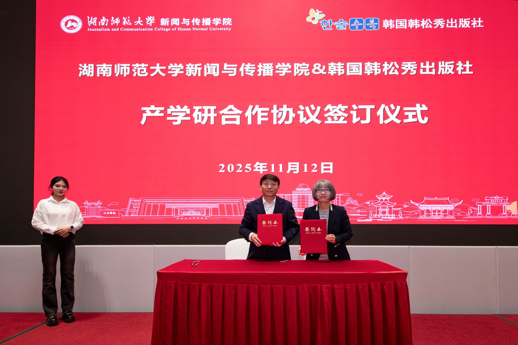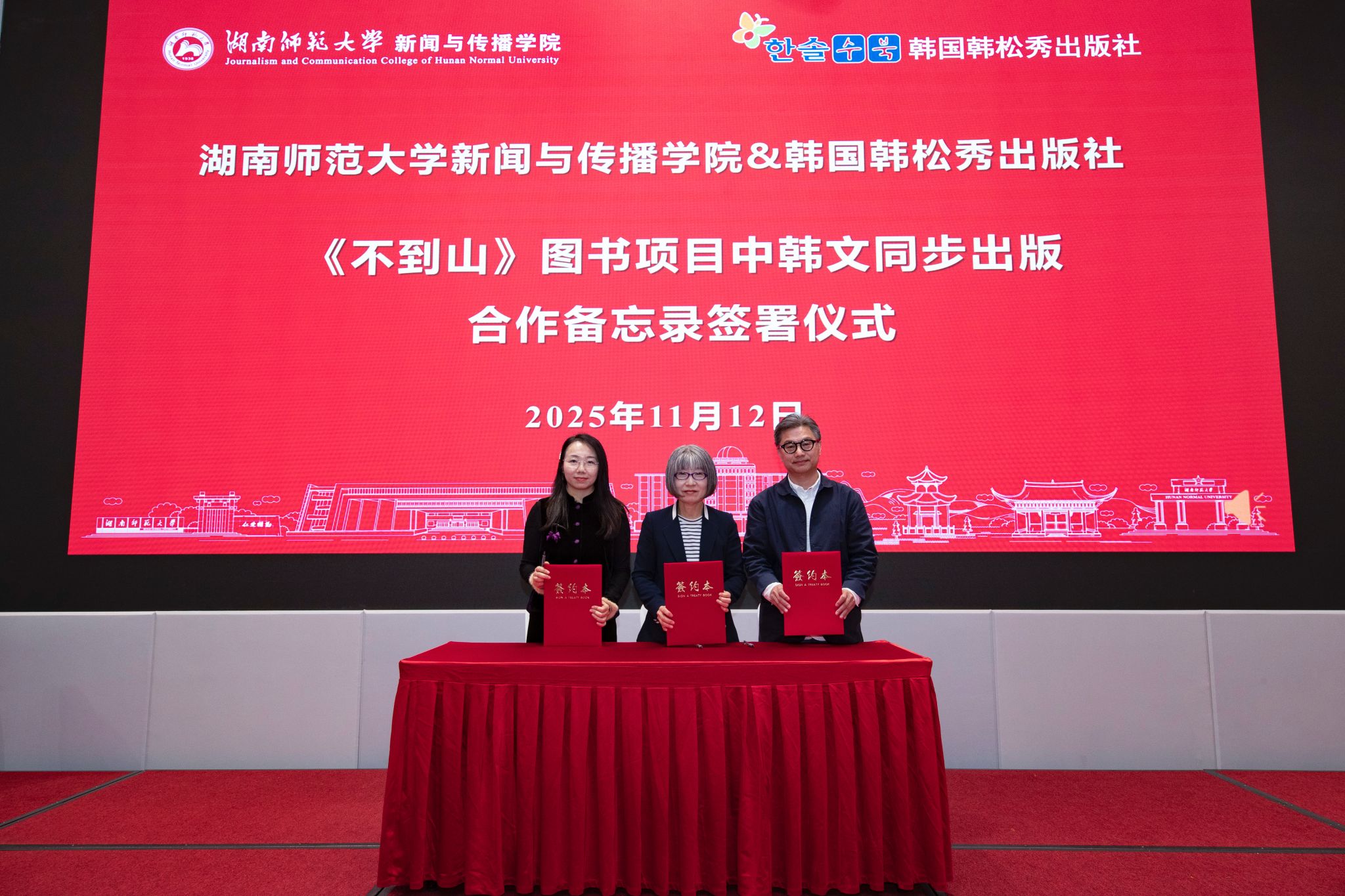 402永利集团周霞教授与韩国韩松秀出版社签署《不到山》图书项目中韩文同步出版合作备忘录