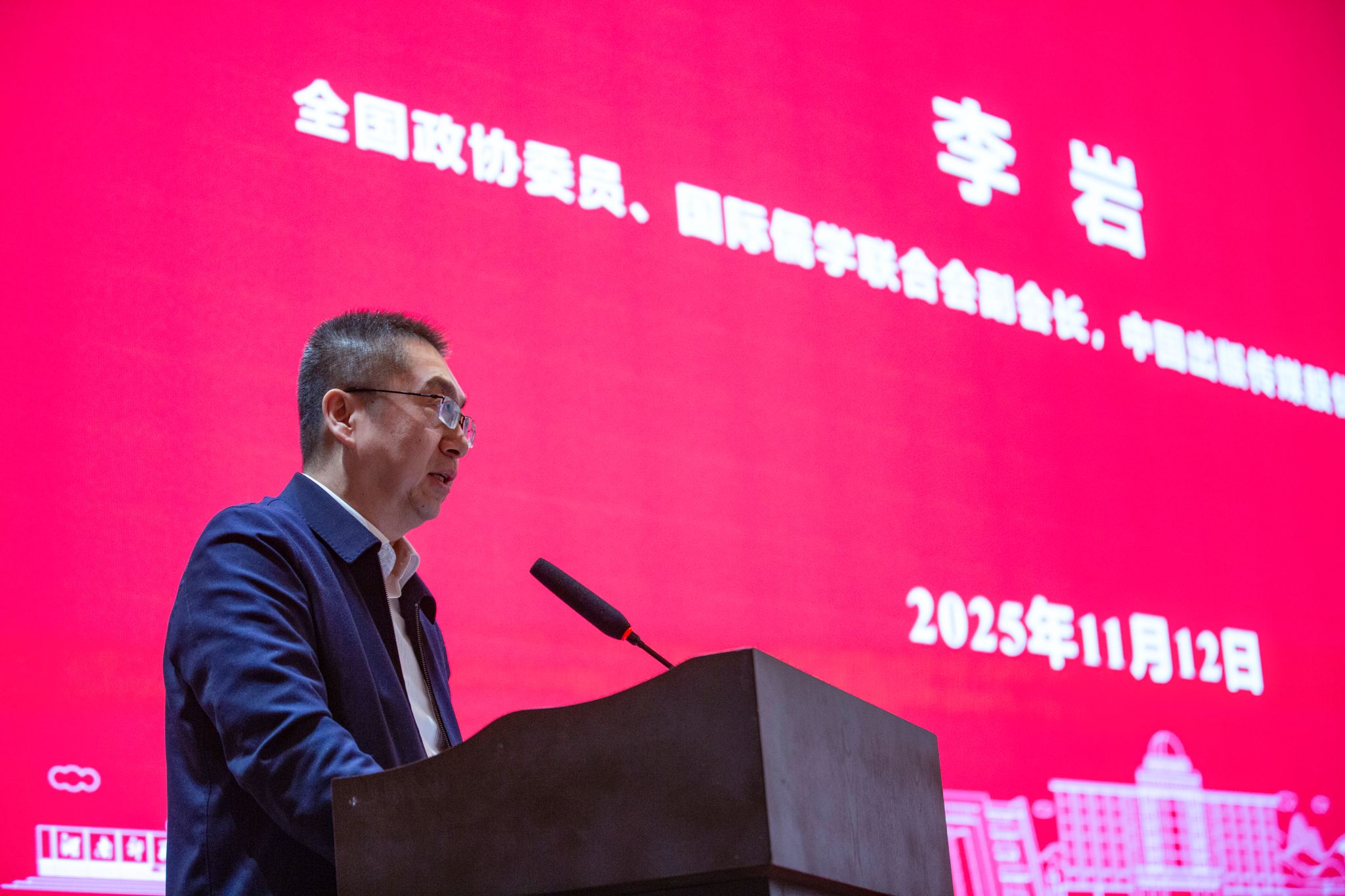 全国政协委员、国际儒学联合会副会长,中国出版传媒股份有限公司原总经理李岩发表演讲