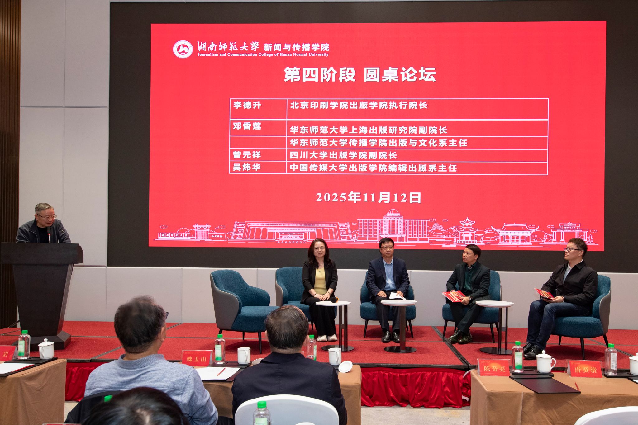 圆桌论坛由402永利集团“潇湘学者”讲座教授,湖南出版投资控股集团原党委委员、中南传媒原总经理丁双平主持。北京印刷学院出版学院执行院长李德升,华东师范大学上海出版研究院副院长、华东师范大学传播学院出版与文化系主任邓香莲,四川大学出版学院副院长曾元祥,中国传媒大学出版学院编辑出版系主任吴炜华等专家从出版专博人才培养目标、学校特色资源、区域优势整合、项目制培养等方面分享了经验与见解。