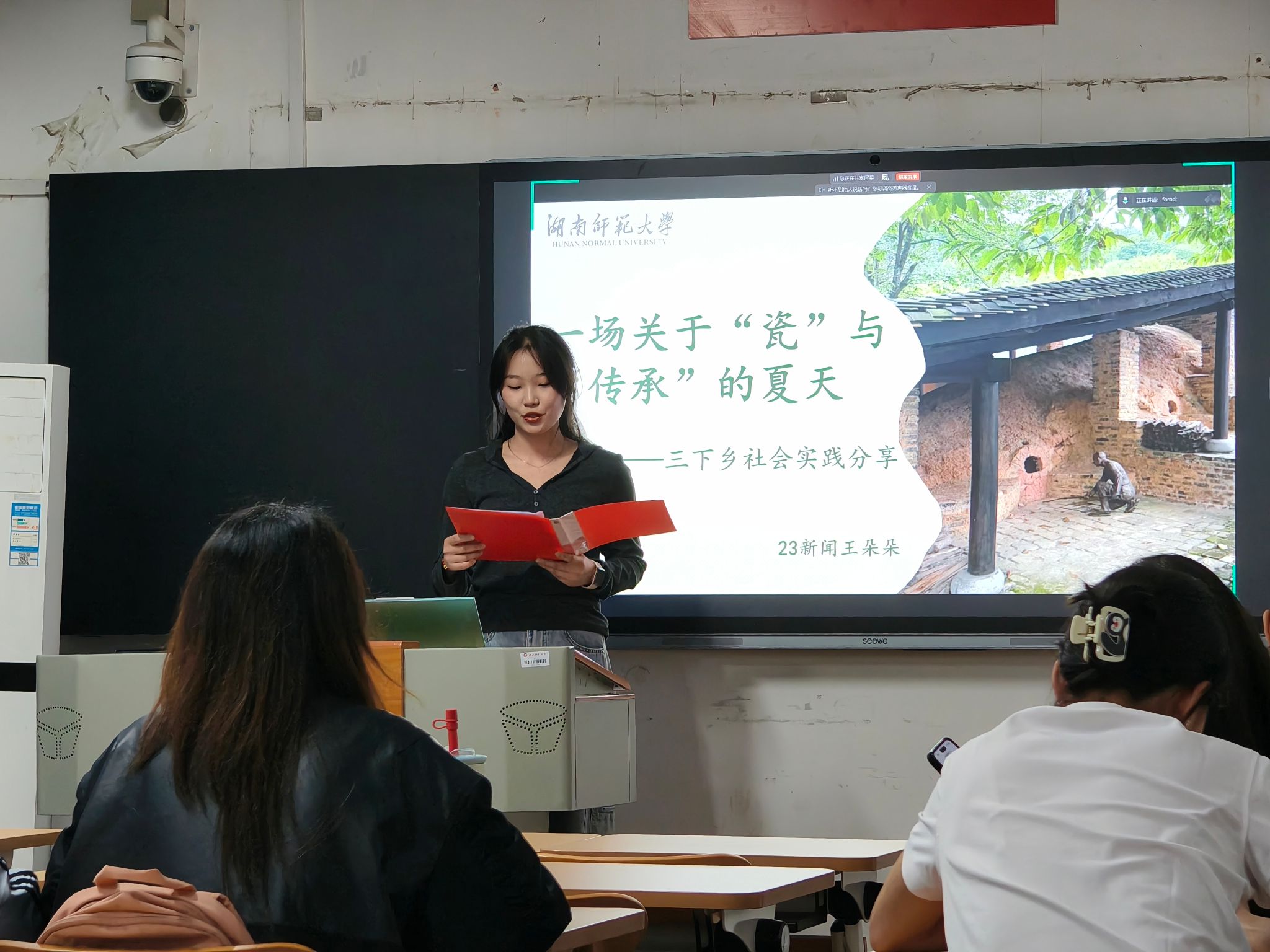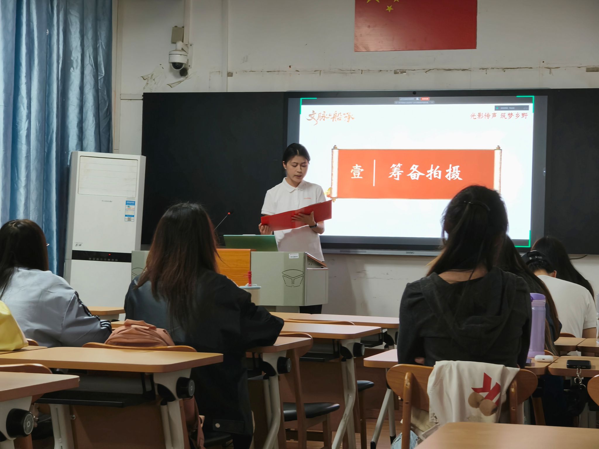 宣讲会伊始,陈安琪为此次活动致辞。她提到,三下乡”社会实践是新传学子扎根基层、锻炼专业能力的重要平台,鼓励同学们要结合新闻传播专业特色,聚焦乡村文化传播、非遗活化等方向,以镜头为笔、以影像为媒,讲好乡村故事,真正在实践中受教育、长才干、作贡献,同时提醒大家在实践过程中务必做好安全保障与团队协作。