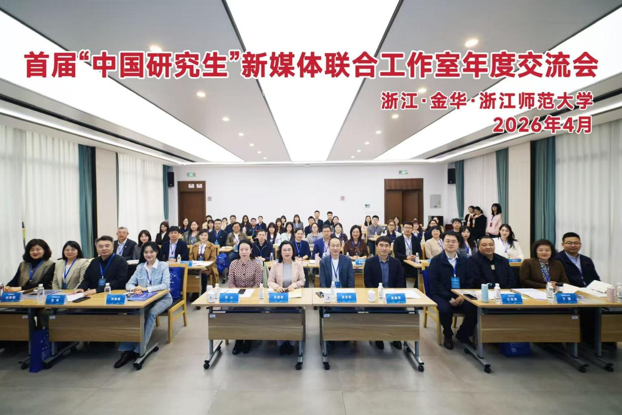 (通讯员 丁忠伟)4月23日,首届“中国研究生”新媒体联合工作室年度交流会在浙江师范大学召开,来自全国16所高校的研工部门负责人、新媒体指导教师及学生代表参会,围绕研究生新媒体内容创作、平台建设与思政引领等议题展开交流。本次会议由教育部学位中心研究生工作处主办,浙江师范大学承办,我校研究生院副院长苏涵琼、402永利集团教师张磊与2024级戏剧与影视专业硕士研究生何巧玲应邀参会,分享我校在“中国研究生”新媒体创作的实践与思考。