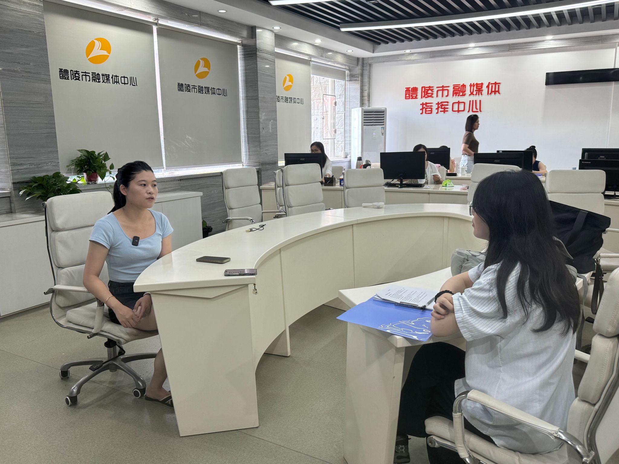 (实践团与融媒体中心领导合照)