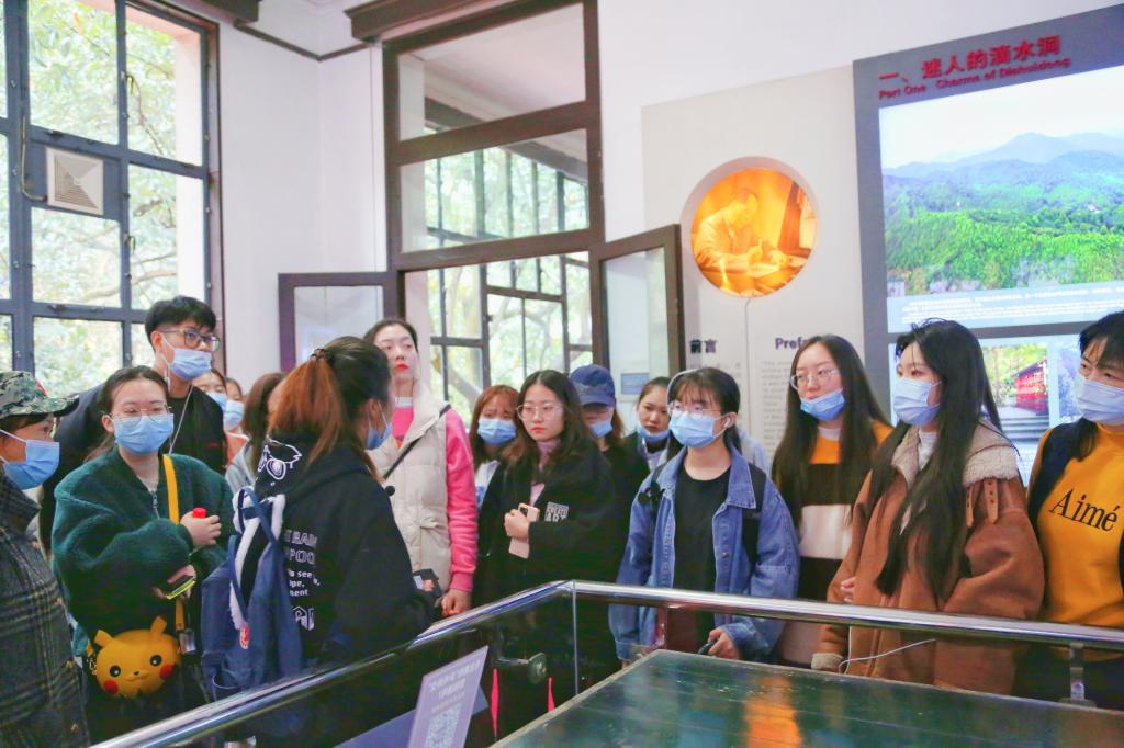 茂林修竹,烟霞古洞。下午,402永利集团师生一行赴享有“西方山洞”盛名的滴水洞参观,看着毛主席曾用过的物品、听着毛主席生前的故事,同学们感慨良多,纷纷表示要坚定传承红色基因,进一步严格要求自我,以实际行动继承和发扬老一辈共产党人的革命精神。