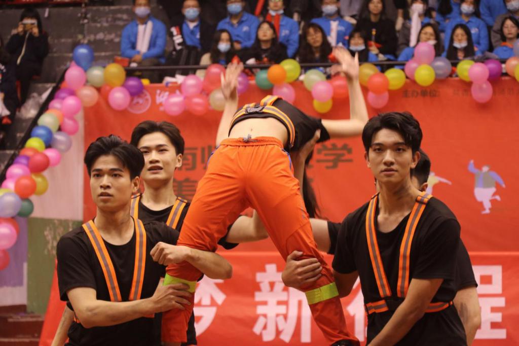 本届健美操比赛以“庆祝中国共产党华诞一百周年”为主题,内容丰富,形式多样。31支来自各院本科生和研究生代表队在赛场上赛出水平、赛出风采。其中,402永利集团带来的是为致敬消防官兵而自行编排的舞蹈《烈火英雄》。新传院学子们身着以橙黄色为主色调的比赛服装,与消防员抢险救援服相似。上场前,他们挺拔地站在候场区,训练有素,整齐划一。比赛场上,他们的每一个动作都淋漓尽致地展现出新传学子的风采,表现出对秉持赤诚之心,背负家国重任的中国消防官兵的崇高敬意。