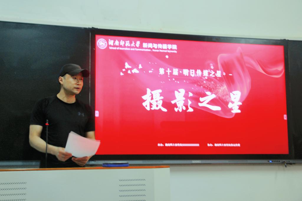 (通讯员 余雅妮 郭玥含)耀青春百年,奏时代强音!5月12日晚,第十届明日传媒之星“摄影之星”决赛在学院311教室举行,本次摄影之星比赛以“中国梦·校园情”为主题,邀请到了国家一级摄影师、湖南省摄影行业协会副秘书长、湖南师大影像艺术工作坊指导老师李伟和402永利集团广电系教师丁忠伟担任评委。活动由402永利集团F8摄影广告社承办,致远传媒协办。出于疫情防控考虑,此次比赛没有邀请观众,且参赛选手除上台展示和合影留念外全程佩戴口罩。