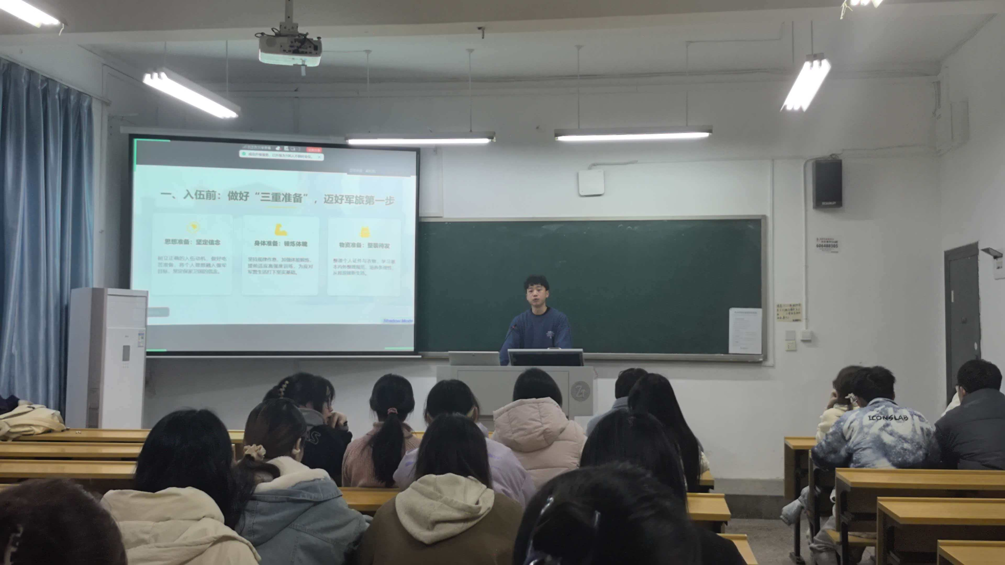 此次活动为学生提供了参军入伍相关政策解读与实践经验分享,帮助学生全面、具体地了解大学生参军入伍相关信息,加深了青年学子对国防事业的认知,增强了学生的国防观念与爱国意识。后续,学院将继续开展国防教育与征兵宣传相关工作,鼓励更多学生投身军营、报效国家。