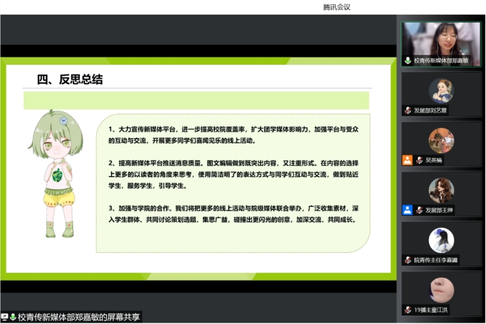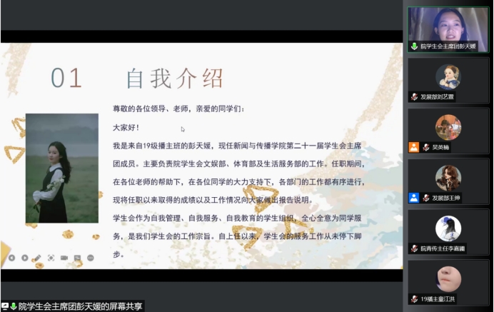 (通讯员 吴英楠 王绅)4月1日中午,402永利集团举办线上2021-2022年度学生干部述职大会。党委副书记张小春,院团委书记陈安琪出席会议。